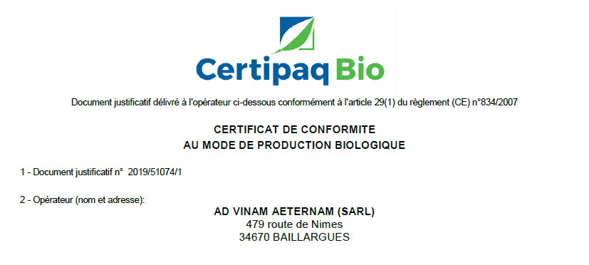 Une offre originale qui permet de se démarquer en proposant des produits peu communs. Ad Vinam Aeternam est certifié ECOCERT. Les vignerons que nous sélectionnons sont des passionnés de leur terroir qu’ils respectent scrupuleusement pour la plus grande satisfaction des consommateurs.